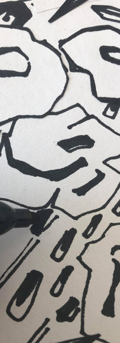 I have been freeing up my designs and looking to new ways of drawing. Although my preferred design handwriting is illustrative, clean line drawing and painting with focus on detail and expression marks, I have really benefited from stylising images further and playing with collage, media and composition. It improves my work greatly the more experimental and diverse that my sketchbook is. I’m looking forward to getting back into the more polished, detailed illustrative designs that I’m working on next.